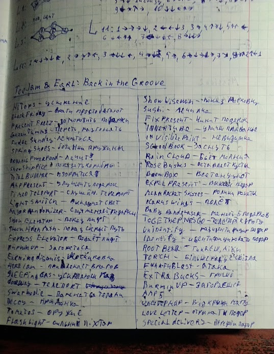 Справа в тому, що я описав лиш манюню дещицю як подарунків так і землян, тож в цю гру дуже важко почати грати, ти просто не знаєш що робить цей подарунок, або той землянин. Гра чесно надає гравцям енциклопедію з описом усіх подарунків і землян... але я сумніваюся, що її (доволі велику) хтось буде читати ПЕРЕД початком гри. Звісно, можна було б грати, та паралельно, за необхідності, дивитися в енциклопедію онлайн на телефоні, та ми з братом пішли олдскульним методом, із використанням зошита та ручки, тобто відкривши подарунок із предметом який раніше не траплявся - записуємо в зошит назву та що він робить, ну а потім підглядали туди коли забували дію цього предмета.